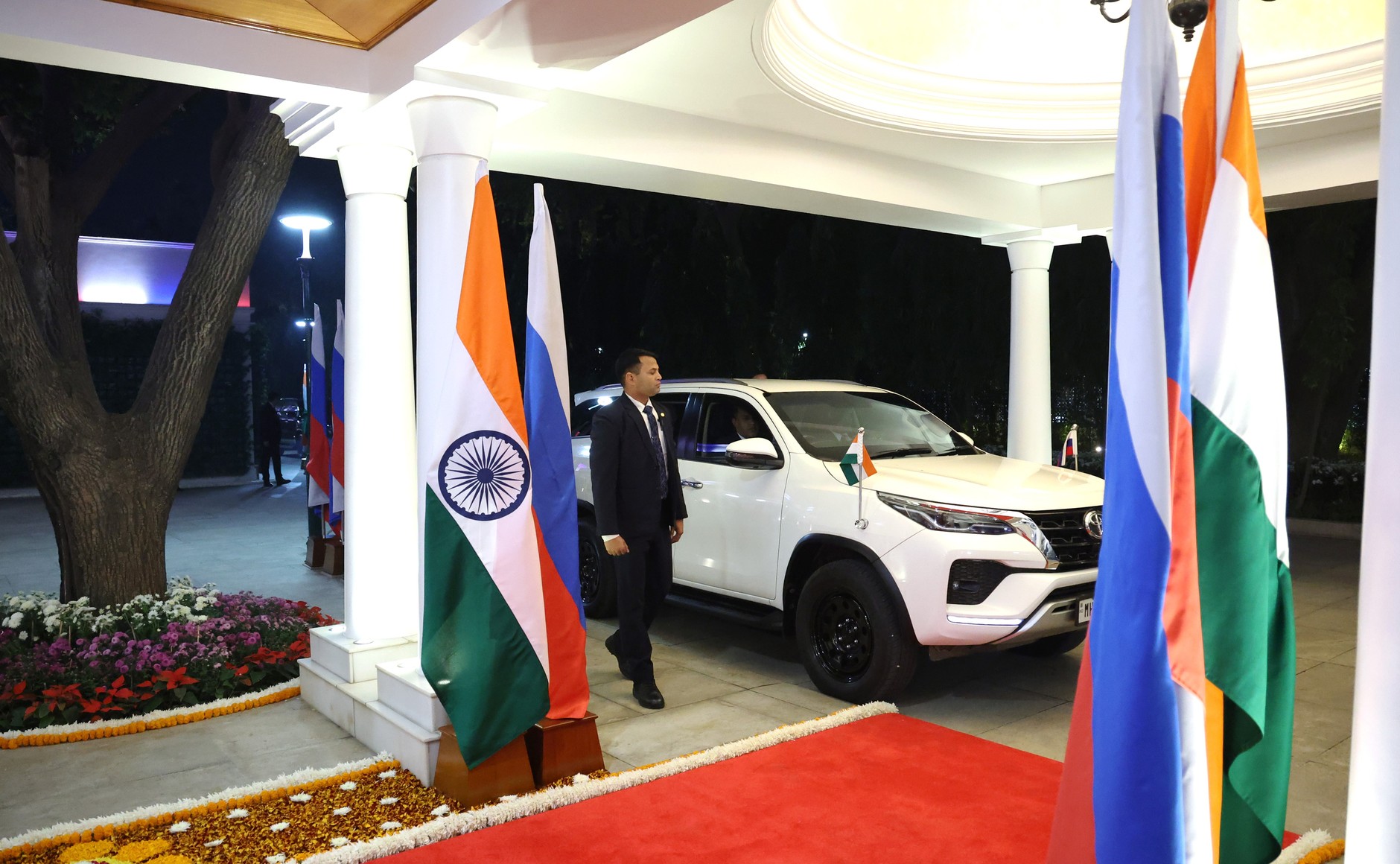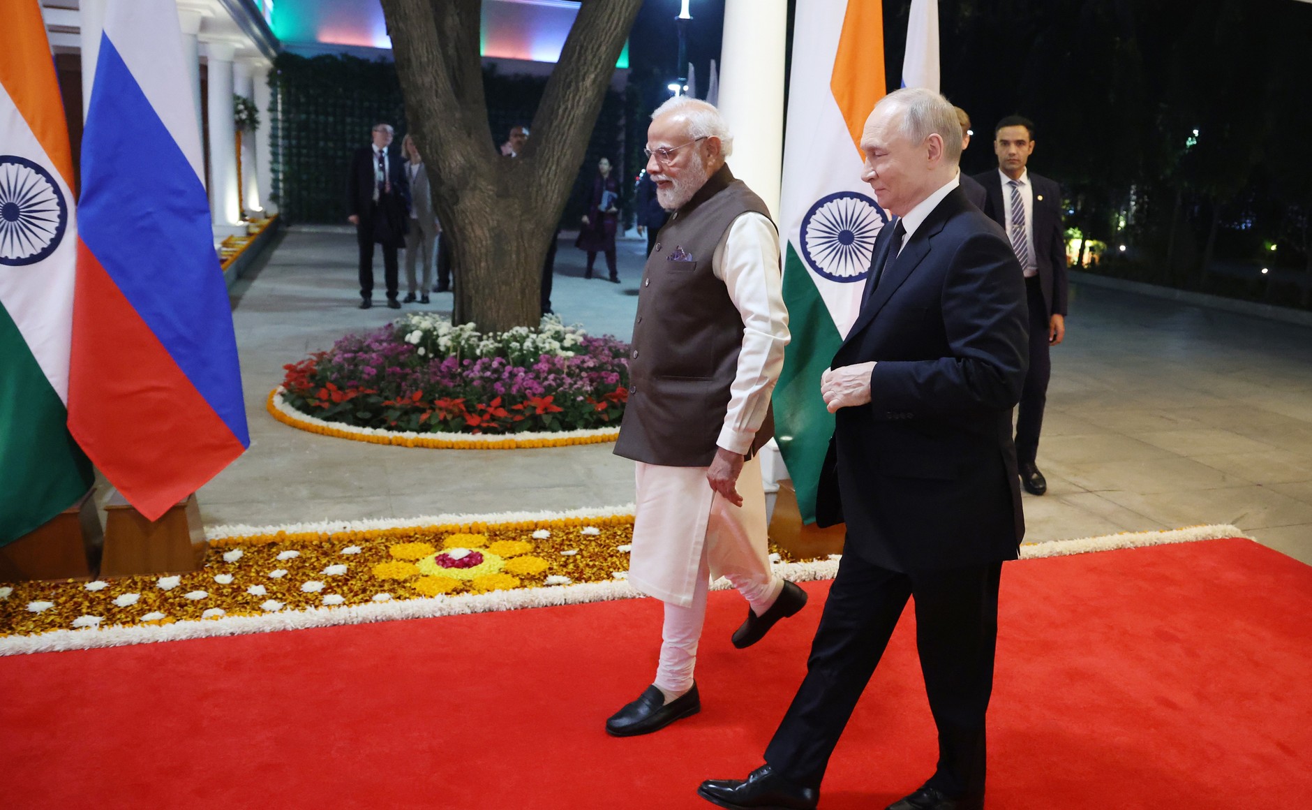 푸틴 대통령에 대한 인도의 환대는 시작부터 남달랐다. 통상적인 의전을 넘어 모디 총리가 직접 팔람(Palam) 공군기지에 영접을 나가는 매우 이례적인 장면이 연출되었다. 서방세계가 그토록 고립시키려 했던 러시아의 대통령이, 세계 최고 인구의 국가인 인도에서 레드 카펫을 밟은 것이다.