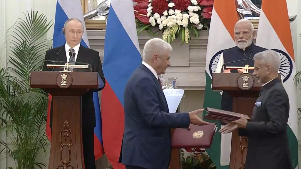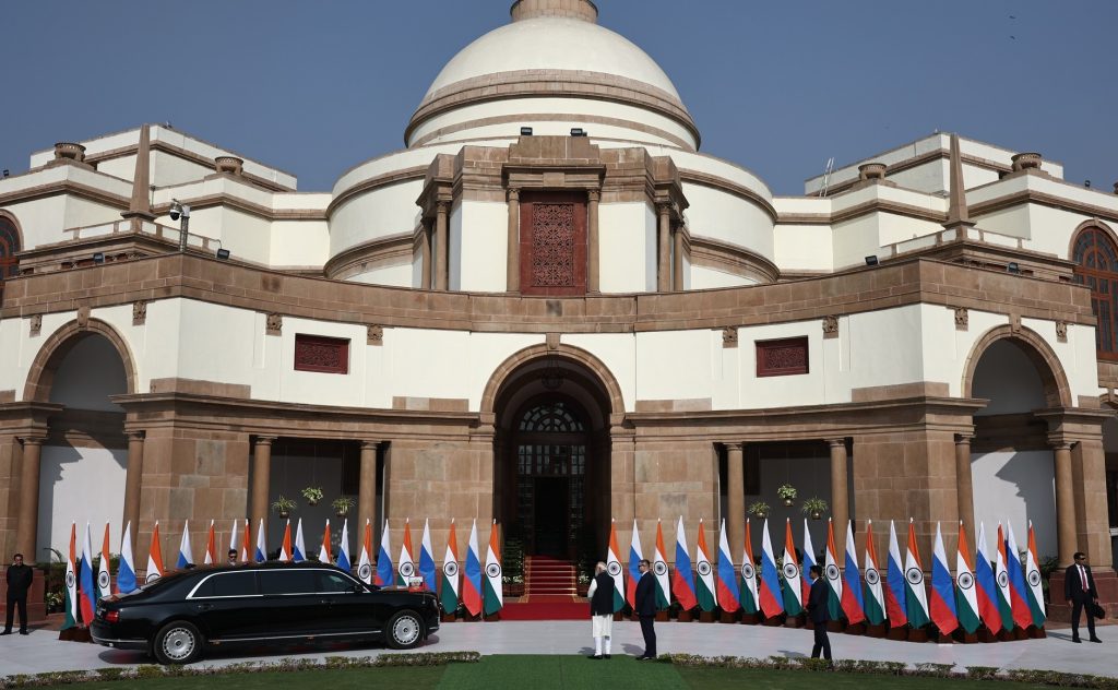 이곳에서 푸틴 대통령은 모디 총리와 ‘제23차 연례 정상회담’ 일정을 소화했다. 양국 정상과 주요 각료들이 배석한 가운데 방산, 에너지, 금융 등 전략적 동반자 관계 전반에 걸친 핵심 의제를 논의했다.
