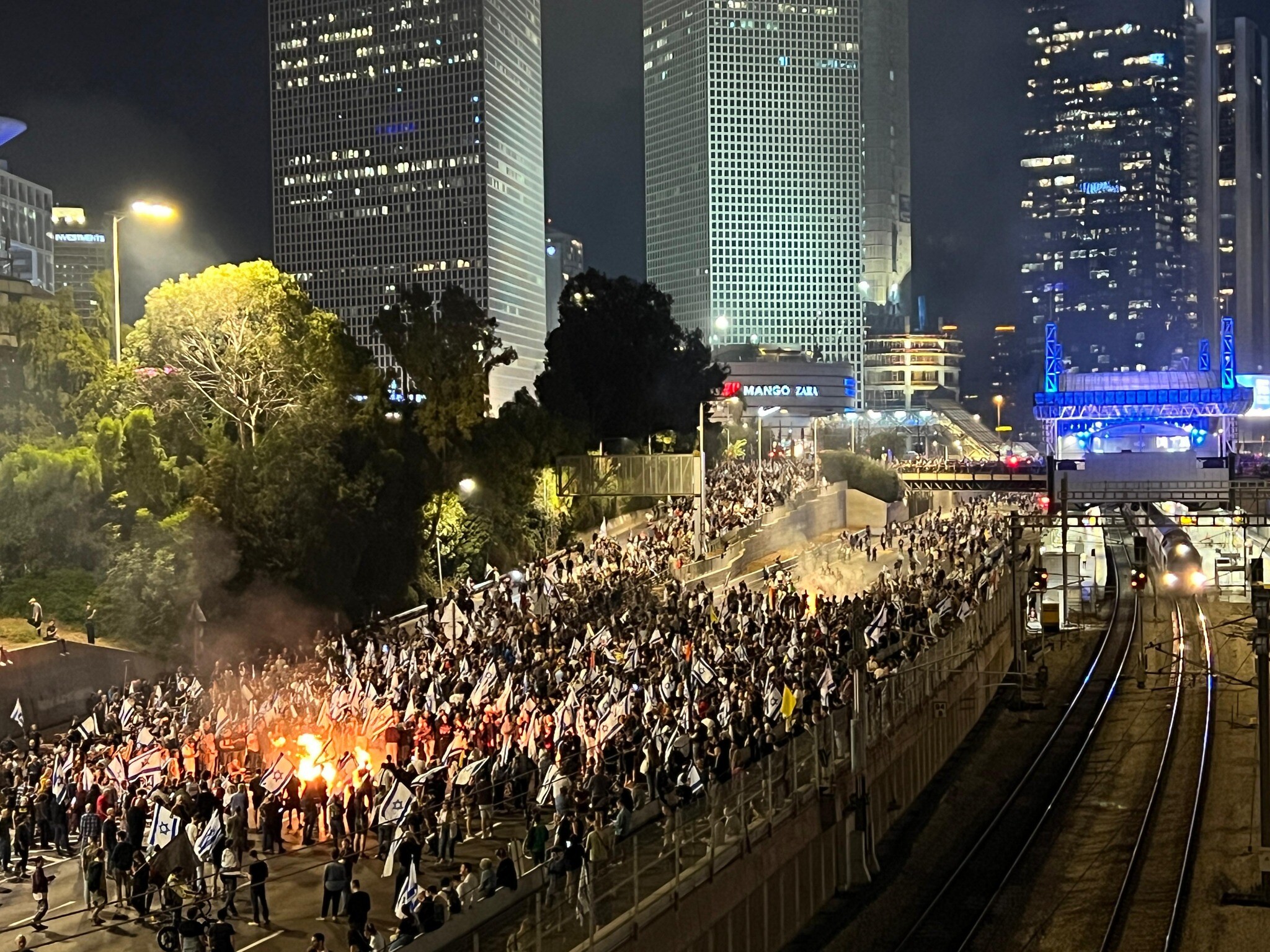 네타냐후의 요아브 갈란트 국방장관 해임 발표후 수천명의 시위대가 텔아비브에 모여 도시의 주요 고속도로를 봉쇄하고 불을 질렀으며, 수백명의 시위대가 예루살렘에 있는 네타냐후 관저로 모여들었다. 시위대는 또한 전국 여러 곳의 도로를 봉쇄했다.